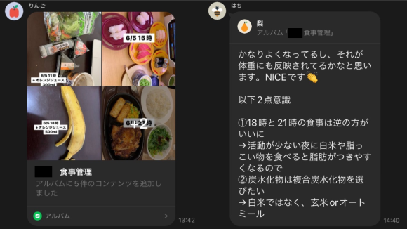 食事管理と、日々の悩み相談が可能です。